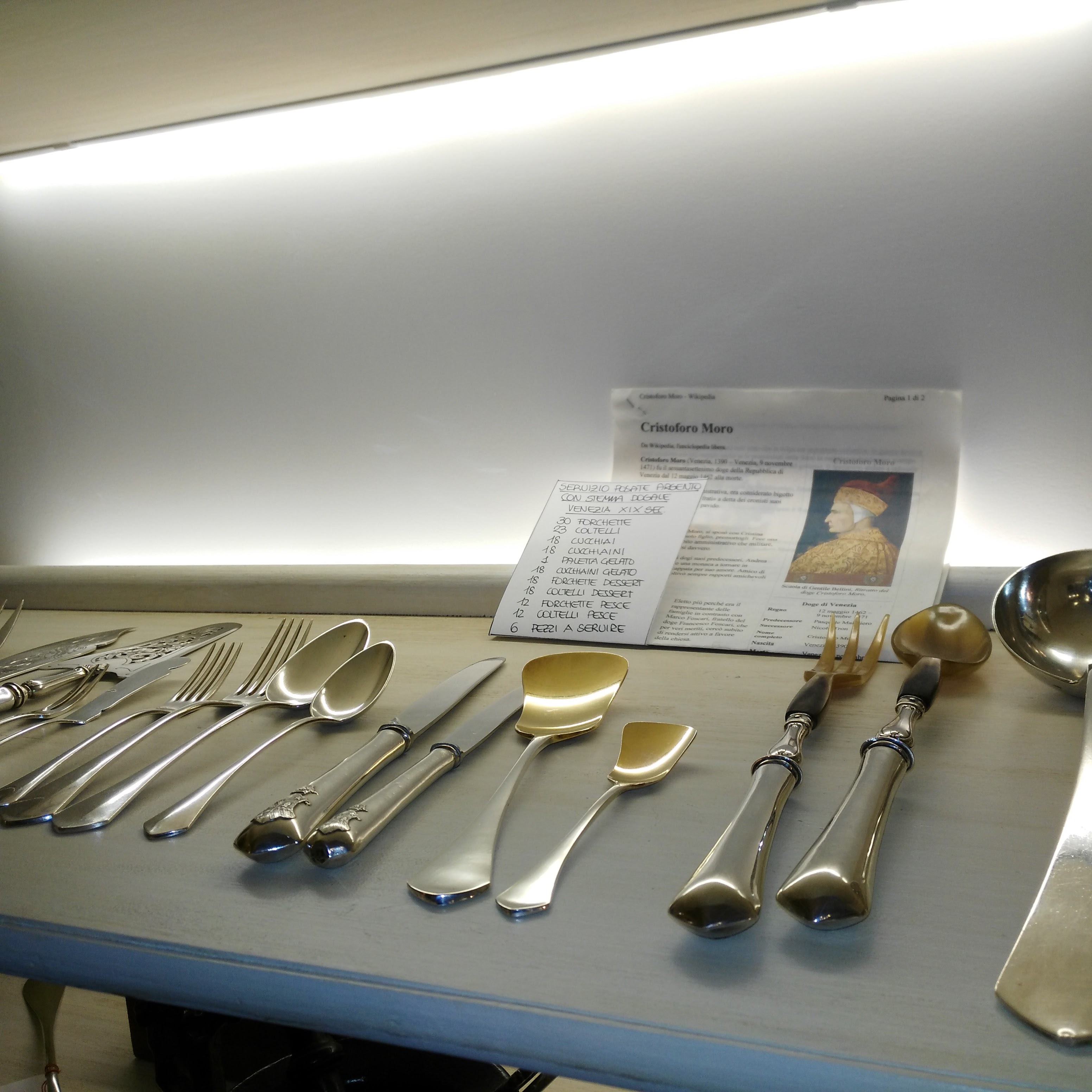 Rifletto il mio sorriso negli specchi delle vetrine che ospitano calici in cristallo di Saint Louis, di Moser, di Maastricht, servizi di Limoges, piatti Richard Ginori, ceramiche di Faenza, oggettistica di Meissen, soprammobili di Herend, servizi da the di Rosenthal, antiche posate in argento, alzatine di Baccarat, quadri come scenografie, argenti come galassie.